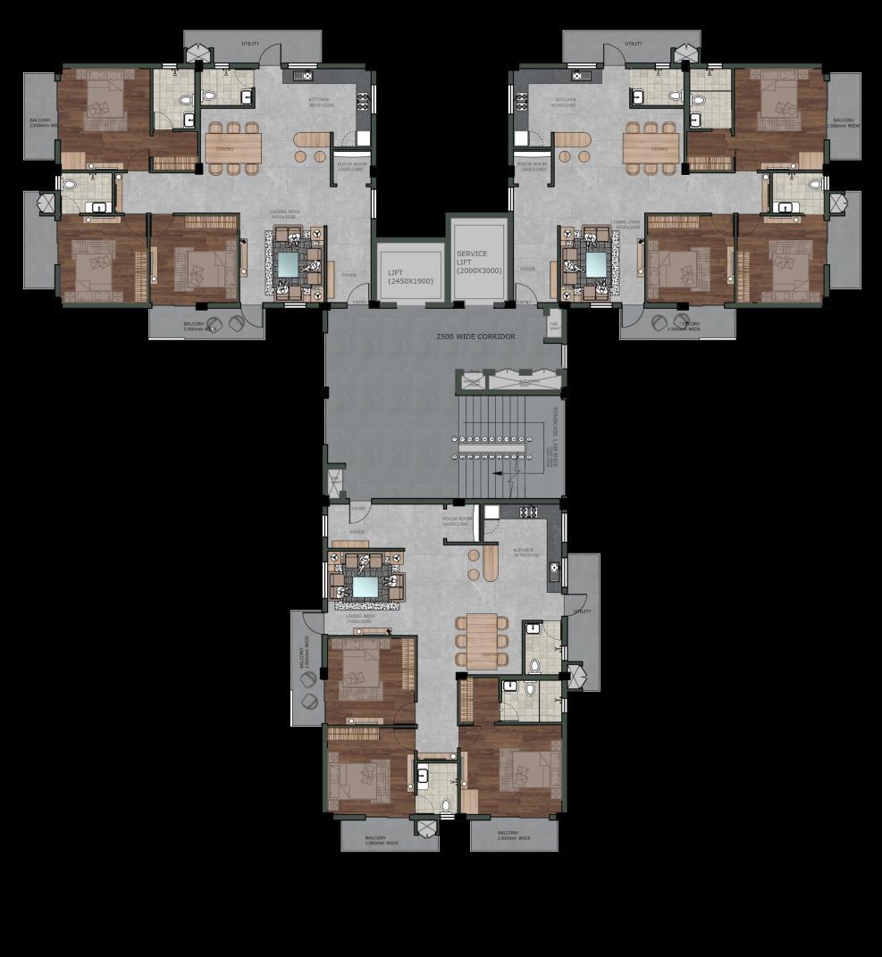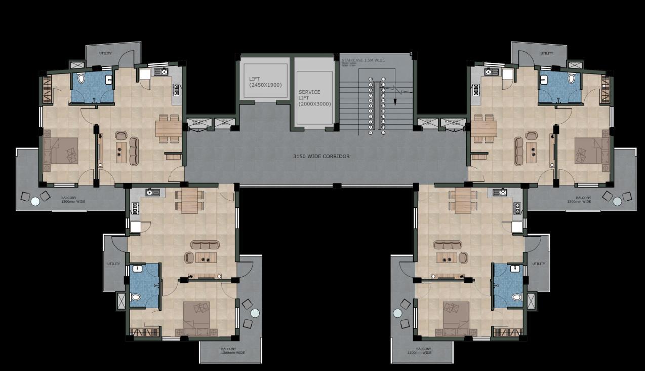 Towers are south facing so that all units can get cool air during summers and sun during winters