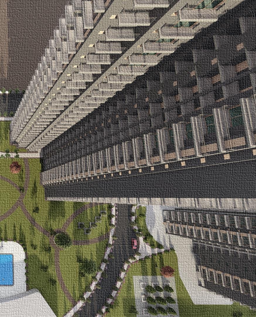 Blocking summer wind around the building and providing sunlight to every room of the apartments