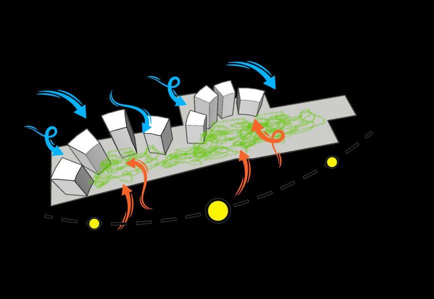 WIND DIRECTIONS AND SUN PATH AROUND THE SITE.