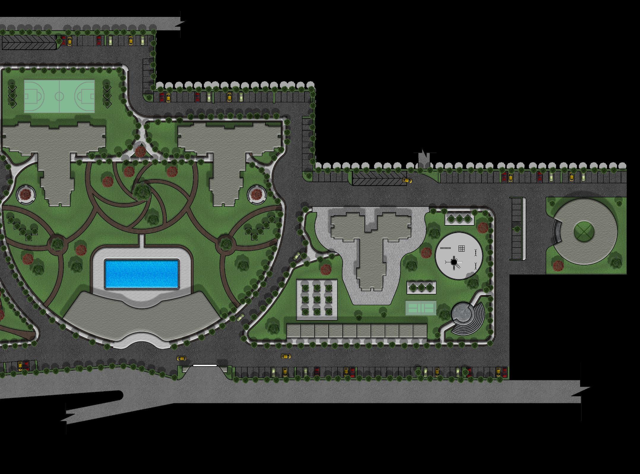 Maximum green areas provided around all the building blocks for a better environment and recreational areas are provided in between