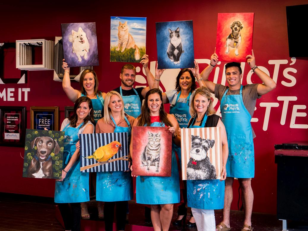 Bringyourpettolifeoncanvas. Guestssubmitaphotoin advanceandarrivetoapreprintedcanvas,makingitfun, approachable,andmemorable foreveryskilllevel.