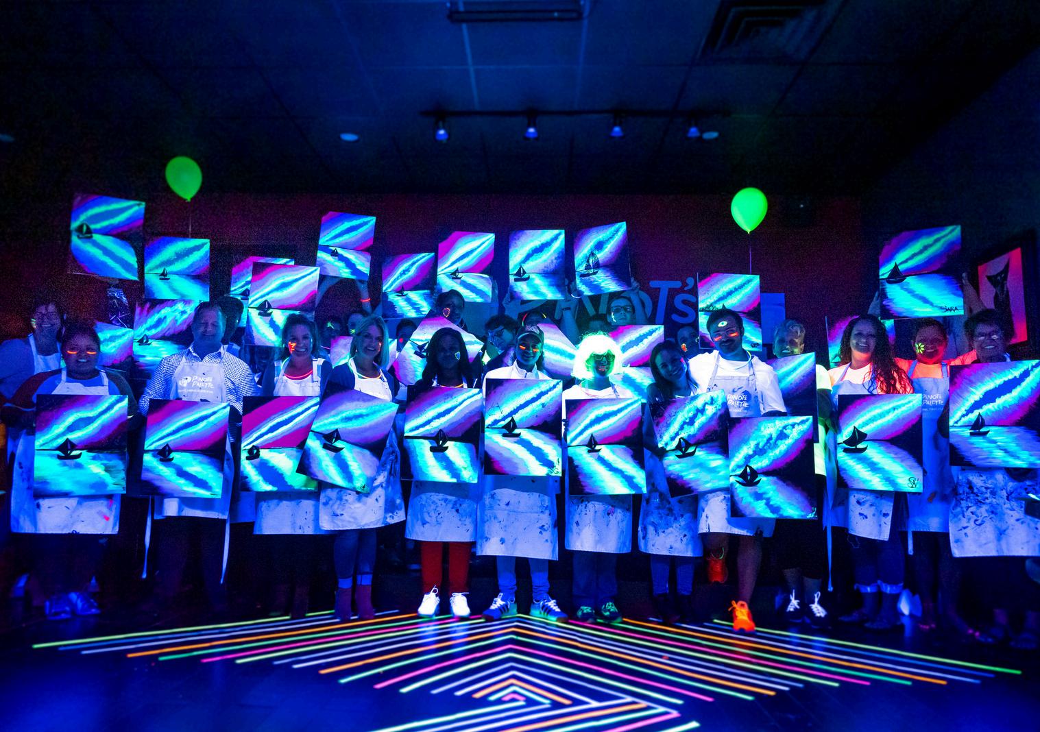 Blacklightsessionsfeelmorelikean eventthanaclass,combiningmusic, glowingvisuals,andsharedcreativity intoalivelynighttimeexperiencethat energizesanygroup