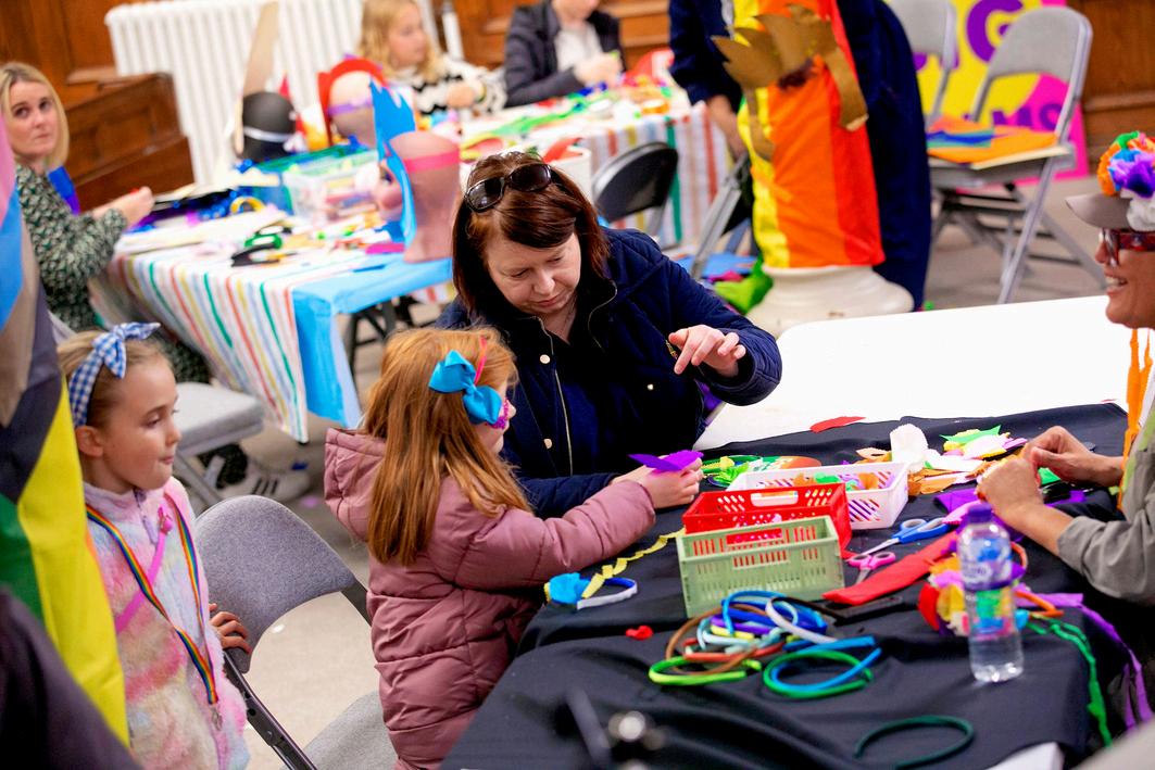 A quiet space for a moment of calm with the opportunity to take part in rainbow weaving.