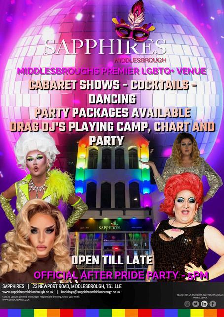 Thank you to the Middlesbrough Pride Planning Group, crowdfunder supporters, Monarchy, Vik Brown, the team at Sapphires and Middlesbrough Council.