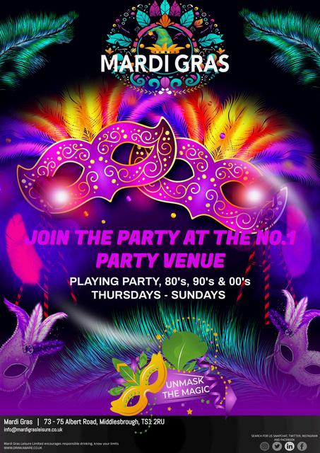 Sapphires, Newport Road, TS1 1LE, 5pm - 4:40am Club XS, Albert Road, TS1 1NS, 5pm - 5:30am Madri Gras, Albert Road, TS1 2RU, 8pm - 4:30am