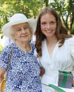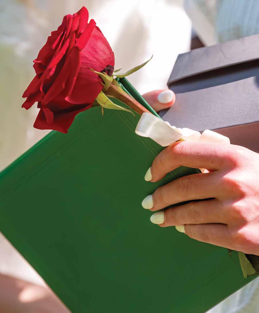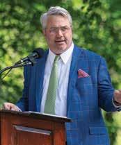 Above: Commencement speaker Sam Perez ’14 reconnects with her former teachers, Joni Calkins, Lori Hancock, Laura Bowling, Janette Moloney, David Cooper, Laurie Nawor, and Tom Novitsky. Inset: King Offutt; Board of Trustees president addresses the Class of 2023