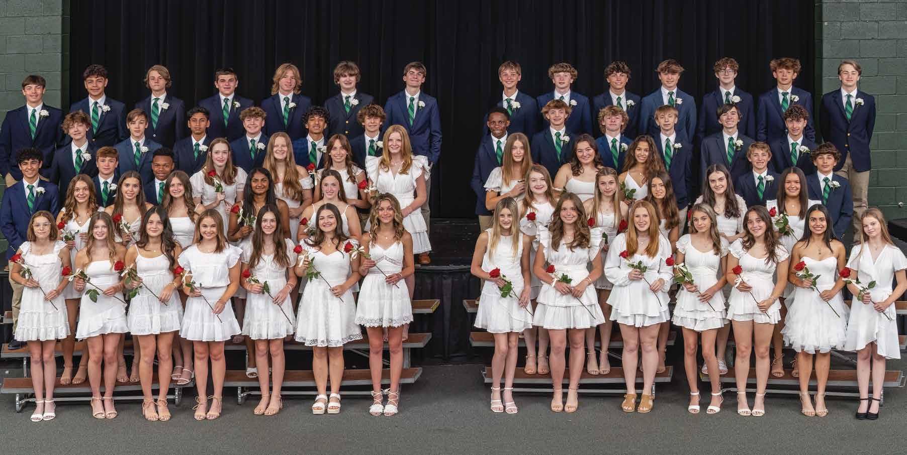 Row 1: Abby Delaplane, Stormy Farish, Sadie Florence, Kate Boardman, Cate Phillips, Grace Woody, Sydney Leslie, Stella Rintoul, Ava Fallon, Sarah Bays, Noura Lovelace, Olivia Mattingly, Ameera Hettiarachchi, Lilly Corser Row 2: Crosby Love, Auveen Shah, Molly Johnson, Vidya Sethuraman, Lauren Counts, Ciara Lacey, Jade Baugh, Ainsley Metze, Cora Crawford, Peyton Beatty Row 3: Robbie Farhadi, Graham Leslie, EJ Beatty, Kate Robbins, Emma Miller, Brooke Barntsen, Ann Reid Chapman, Grace Gustafson, Gigi DeRossett, Poppy Karthikeyan, Grady LaMonica, Arif Softic Row 4: Quin Harris, Noah Borland, Armaan Rayapati, Paul Miller, Hamza Iqbal, Benton Dyer, Dillon Jenkins, Chance Anderson, Cohen Carter, Cade Howell, Noah Hubert, Joshua Begley Row 5: Gable Hart, Chris Escobar, Tazewell Schnabel, Paul Coppedge, Collin Smithwick, Max de Castro, Chase Kronenberg, Field Costich, John Gaines, Woods Nahra, Harrison Phillips, Noah Staley, Gage Pennington, Jud Masters