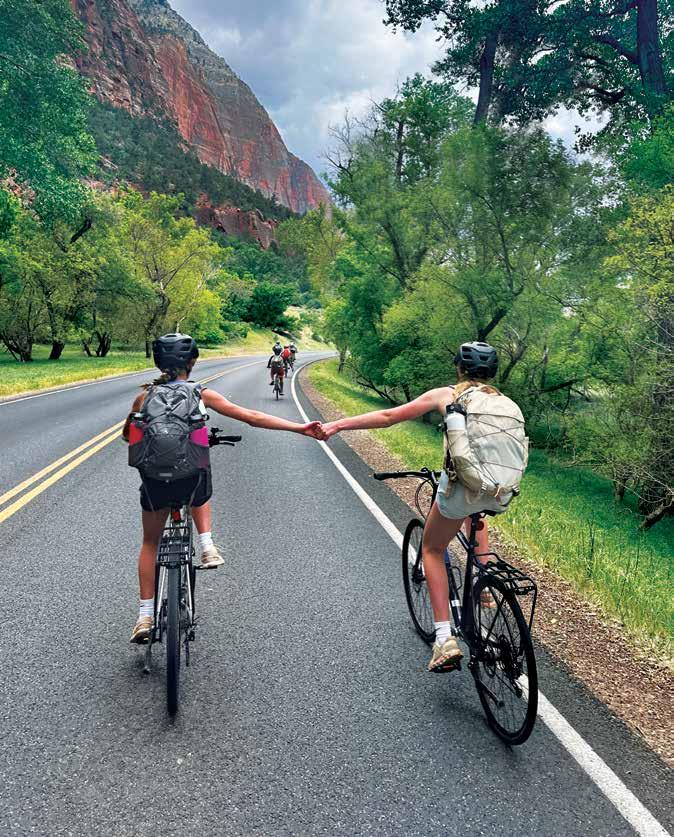 Reaching a grand lookout on their Southwest trip, members of the Class of 2019 take a break during their mountain biking journey to enjoy the vista.