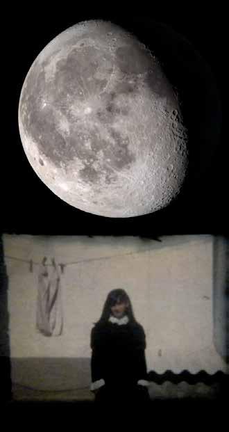Waning crescent horizon ( Vertical Horizon series), 2022 Duration 3 min.Video collage of digitized 8mm family archive film and NASA satellite video, with sound. HD Format. Vertical projection in monitor Julia Zurilla is a member of the Laundromat Art Space Residency Program, Miami. Photography: Courtesy of the artist. Duración 3 min. Videocollage de película de archivo familiar digitalizada en 8mm y video satelital de la NASA, con sonido. formato de alta definición. Proyección vertical en monitor.