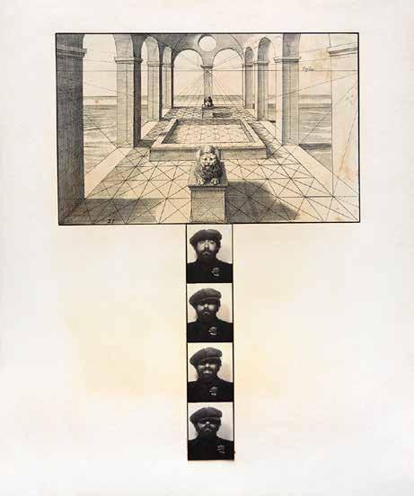 Imagen impresa con tinta de archivo, collage, grafito e hilo sobre papel fotográfico mate sin ácido. 14” x 11”