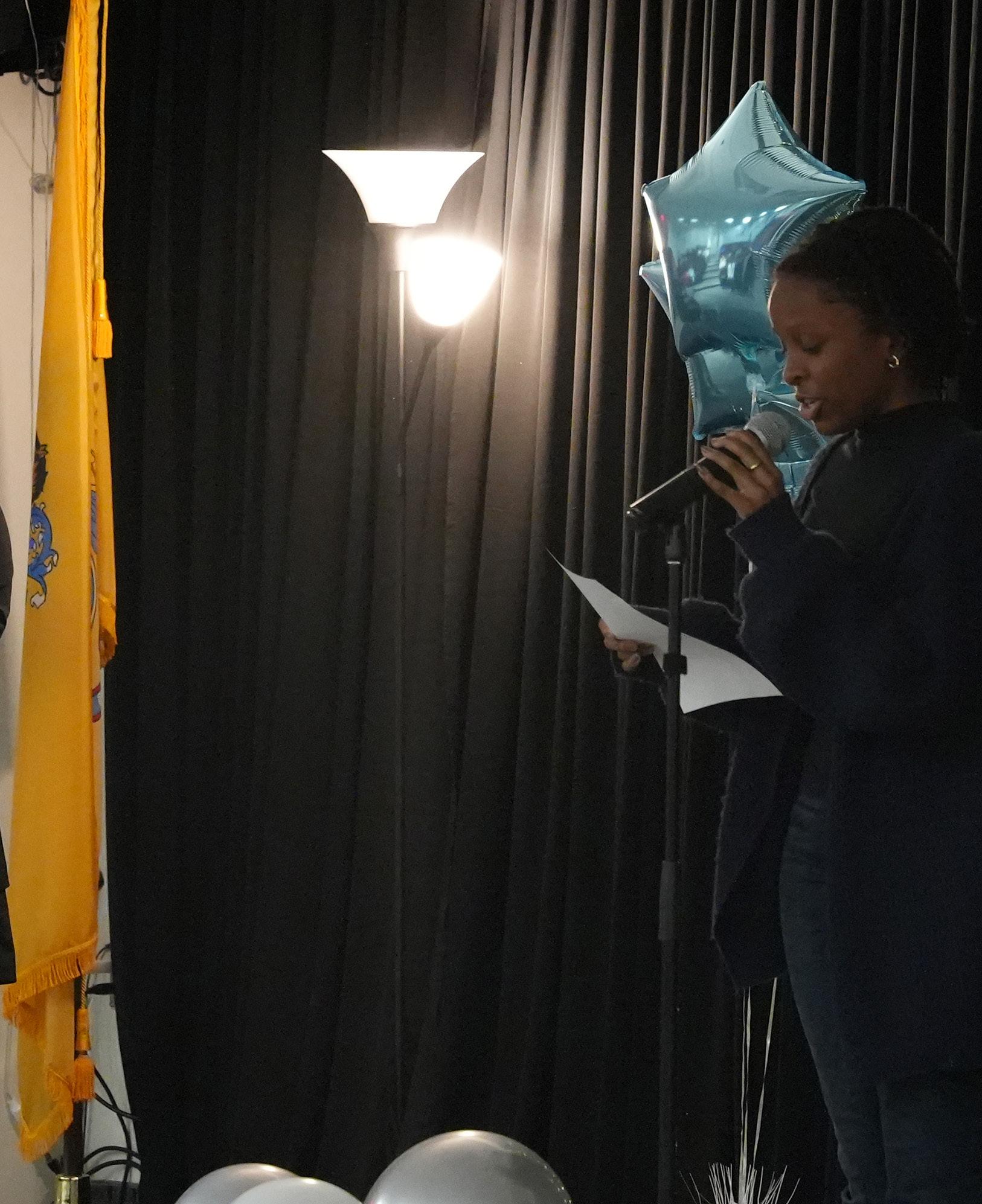 The anticipation leading up to the poetry night was filled with joy and hard work by both teachers and students alike. Mrs. Ezmat, Ms. Loesser, Ms. Du Val, and Ms. Nielsen, the Advanced ELA teachers, nurtured the budding poets. Each educator had a unique and profound influence on her students; Mrs. Ezmat’s helped hesitant voices find their confidence. Ms. Loesser’s passion pushed students to leave no emotion unexplored. Ms. Du Val’s attention to the craft set the standard, while Ms. Nielsen’s nurturing spirit provided a safe space for self-expression.