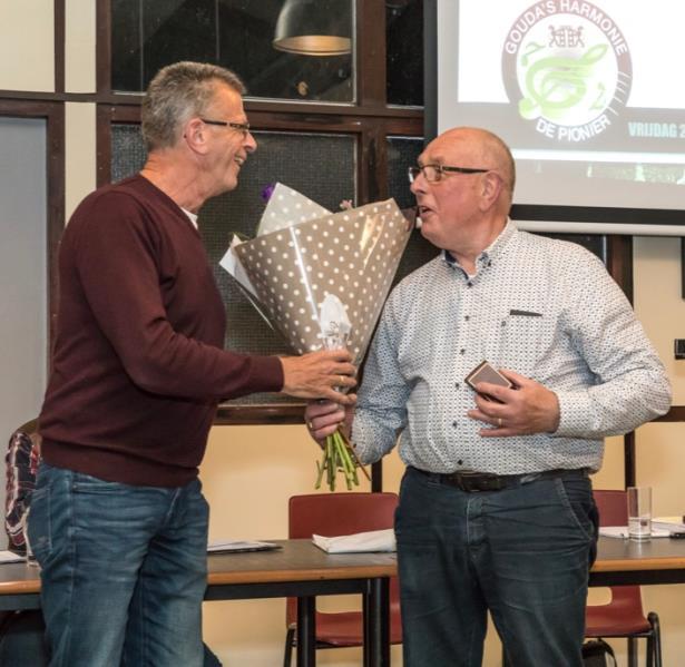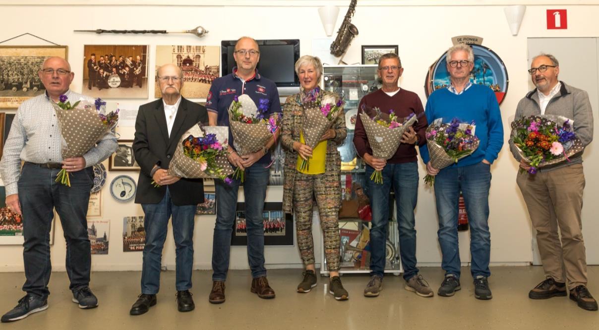 Saxofonist Nico van der Spree mocht ook zijn 55 jarige jubileum vieren. Bij de Harmonie speelt hij mee op de altsax en bij de bigband op de baritonsax. Hiernaast verzorgt Nico ook audio- en video-opnames en montagewerk voor de vereniging. Henk Danens begon zijn Pionier carrière 65 jaar geleden op de piccolo, maar ruilde dit na een jaar ploeteren in voor de schuiftrombone. Naast de vele andere klusjes die hij voor de vereniging doet staat hij al 45 achter de bar!