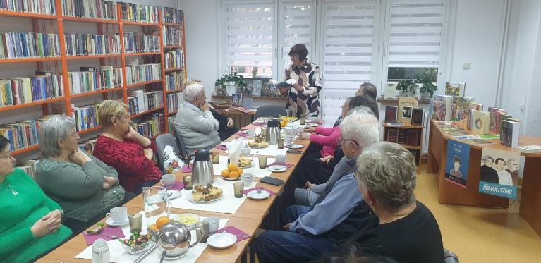 W pierwszej części spotkania prelegentka wyjaśniła, czym jest dzieło literackie i omówiła wyróżniki literatury jakimi są fikcja literacka, obrazowość oraz organizacja naddana tekstu Wśród wybranych przykładów dzieł literackich nie zabrakło wierszy Wisławy Szymborskiej oraz utworów klasyków literatury polskiej takich jak: Bolesław Prus, Henryk Sienkiewicz, Stanisław Wyspiańskiioczywiście–AdamMickiewicz. Drugaczęśćspotkaniamiałacharakter warsztatowy. Seniorzy przeczytali wiersz pt. „Radość pisania” Wisławy Szymborskiej i poszukiwali w nim odpowiedzi na pytanie czym jest fikcja literacka. Następnie, po przeczytaniu fragmentu ks. I „Pana Tadeusza” Adama Mickiewicza, uczestnicy dyskutowali