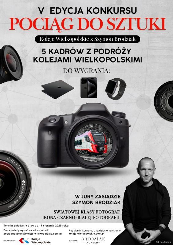 uczestnicy tworzyli animacje, grafiki i obrazy Tym razem główną rolę gra fotografia. Hasło tegorocznej edycji brzmi: „5 kadrów z podróży Kolejami Wielkopolskimi”, a uczestnicy mają za zadanie uchwycić klimat podróży pociągiem w pięciu zdjęciach Począwszy od pierwszej edycji konkursu „Pociąg do Sztuki” miał być przestrzenią zmienną i inspirującą. Każda edycja to nowe medium i nowe spojrzenie. Fotografia pozwala zatrzymać chwilę i dokładnie tego będzie poszukiwać w przesłanych pracach jury konkursu - historii opowiedzianych. Partnerem oraz członkiem jury tegorocznej edycji konkursu jest światowej sławy artysta, mistrz czarno-białej fotografii – Szymon Brodziak. Prace można nadsyłać do 17 sierpnia 2025 r. na adres: pociagdosztuki@kolejewielkopolskie.com.pl. Szczegóły konkursu i regulamin dostępnesąnastronieinternetowejKoleiWielkopolskich.