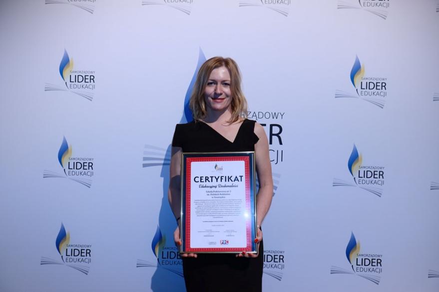 Podczas uroczystej gali „Certyfikat Edukacyjnej Doskonałości dla Szkoły Podstawowej nr 3 im. Polskich Noblistów w Swarzędzu” miała zaszczyt odebrać Dyrektor DorotaŚwierczyńska.
