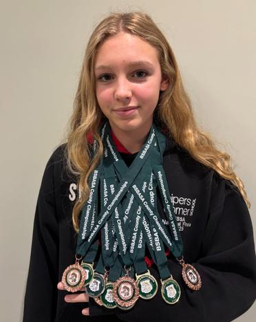 Sienna competed in her recent County Swimming Championships and came away with numerous medals, she also secured additional medals in the Senior category, finishing top three female in four events