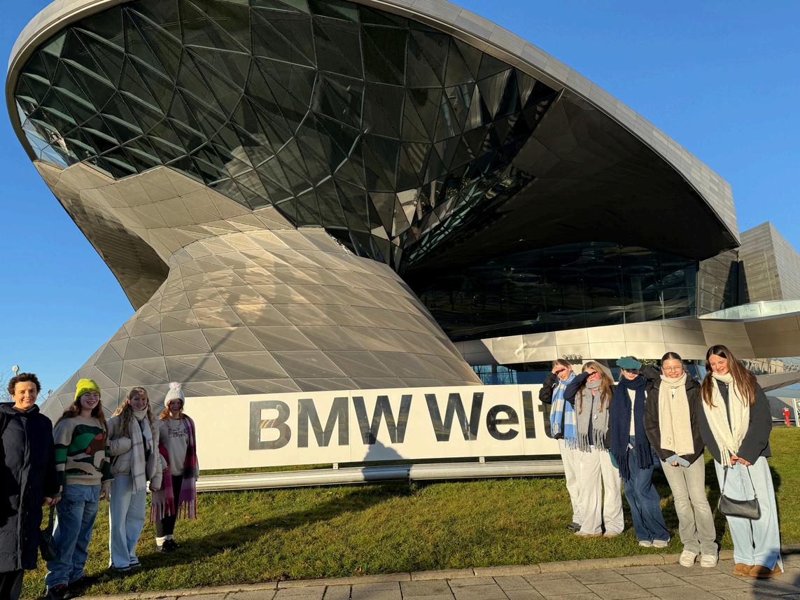 The next day, the group started off with a walk to BMW World which showcased the latest BMW cars and motorbikes. The students gained great insight into the German brand’s approach to sustainability, innovation and technology What followed was the Glockenspiel show in the main square in Munich and a walk round the old town They even popped into the Hofbrauhaus to listen to traditional Bavarian music The action didn’t stop there as the afternoon involved seeing an exhibition at Munich University about the White Rose Student Movement during World War II which was based in Munich They then went onto the Allianz Stadium to have a tour of the football stadium, buy some souvenirs and have dinner at a Christmas Market