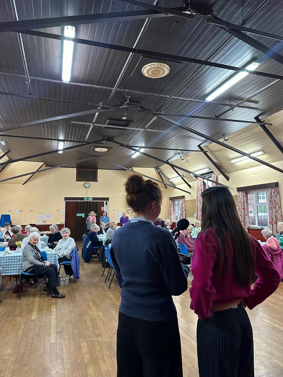 We were proud to have had some of our Sixth Form students invited to perform for the 'Forget-Me-Nots Club' in Prestwood, a club that has been running since 1961. In this monthly meet up for over 60s in the local community, members get together for an afternoon tea and entertainment, such as bingo or a quiz. Our students sang for around half an hour, then handed out some gifts to club members who had a birthday in the last month, and then stayed for tea and cake and to talk to the members Our students will be returning again in May, which is already exciting community club members