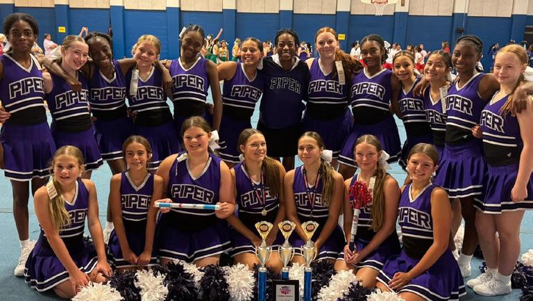 Piper Middle School Cheer had an incredible showing, earning a clean sweep in their division at the regional tournament this summer. The team brought home top honors in Band Chant, Situational Chant, and Cheer (Large Non-Varsity), along with the Herkie Award, St. Jude Spirit Award, Spirit Stick, and 19 All-American nominations, one for every team member. Congrats to All-American winners Ava and Mayzie.