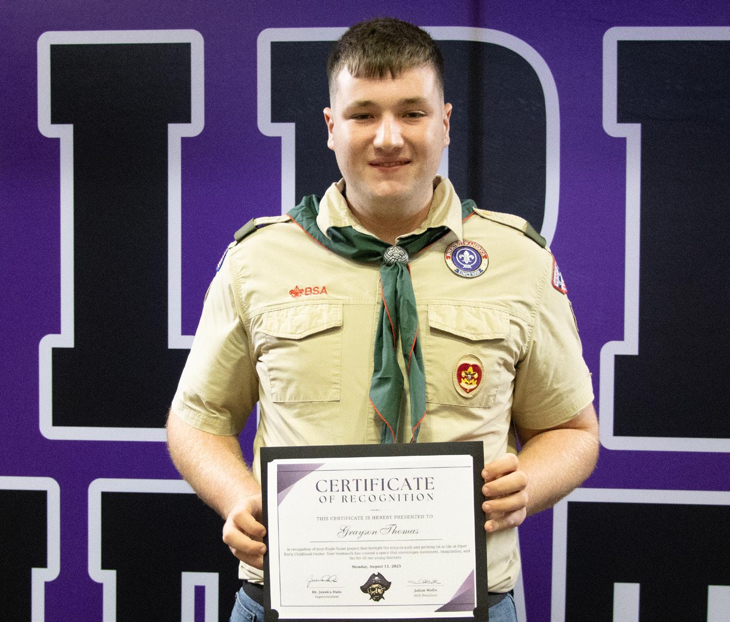 As part of his Eagle Scout project, Grayson Thompson, a junior at Piper High School, took on the challenge of enhancing the Early Childhood Center playground. With careful planning, attention to detail, and many hours of hard work, he transformed the area by painting a vibrant new tricycle path and constructing a safe, thoughtfully designed tricycle parking lot. His project was more than just construction; it was a vision for how play can be structured to inspire movement, creativity, and joy.