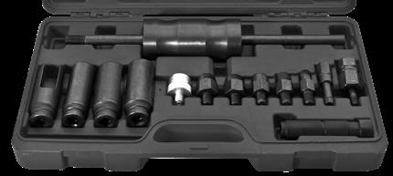• Set includes heavy duty slide hammer, 1/2”Dr deep open profile sockets, used to dismantle injectors, plus adaptors for attaching the slide hammer securely to the body of the injector.