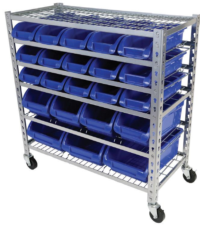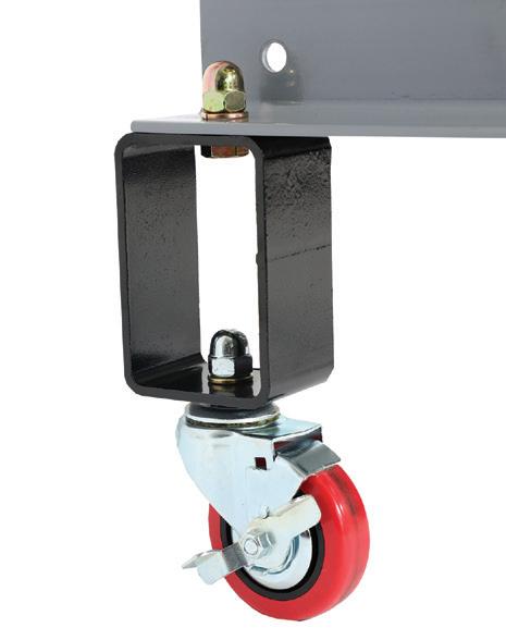 Two heavy-duty locking swivel casters for control and maneuverability.