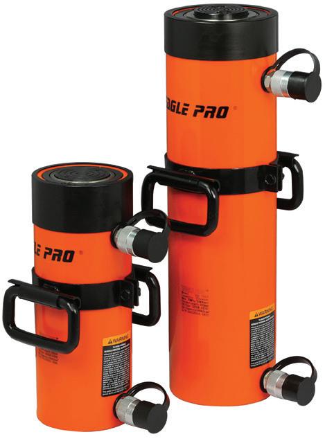 The Eagle Pro EL series includes an alloy steel lock nut for mechanical load holding. The EL series is constructed of a high strength alloy steel to maximize durability. The hardened chrome piston reduces damage caused from wear and corrosion. The over flow port functions as a stroke limiter. The EL series includes hardened grooved replaceable saddles. Composite bearings prevent metal-to-metal contact. Quick reaction times are obtained through with heavy-duty straight pull return springs. An environmentally friendly coating process produces a finish that further increases durability.