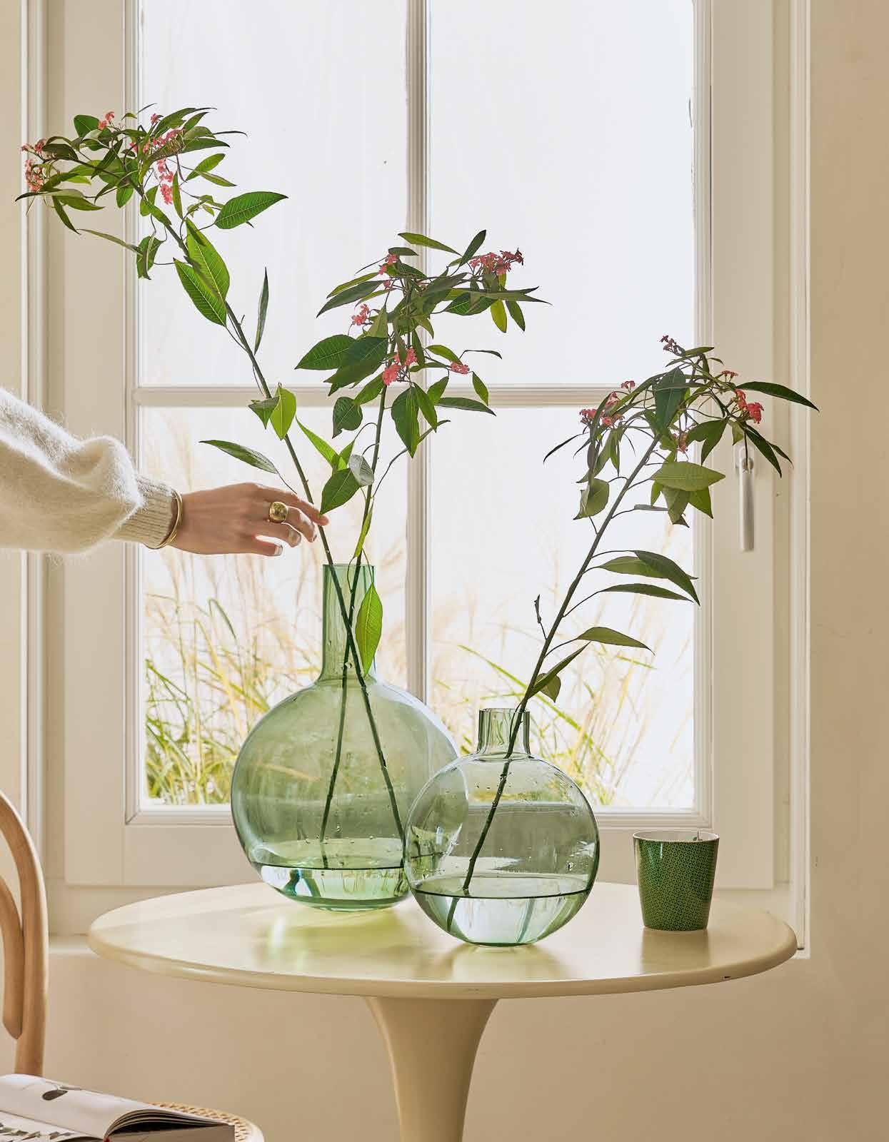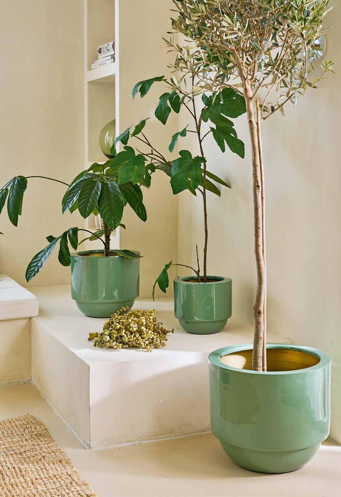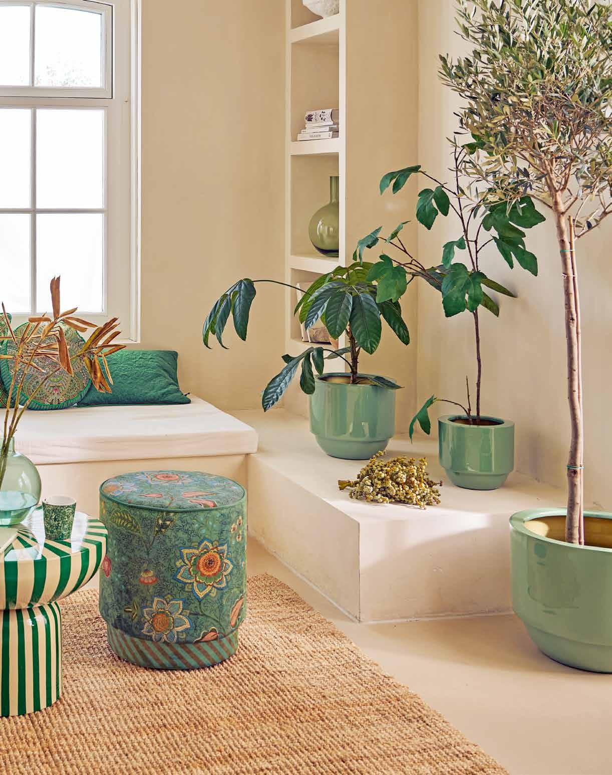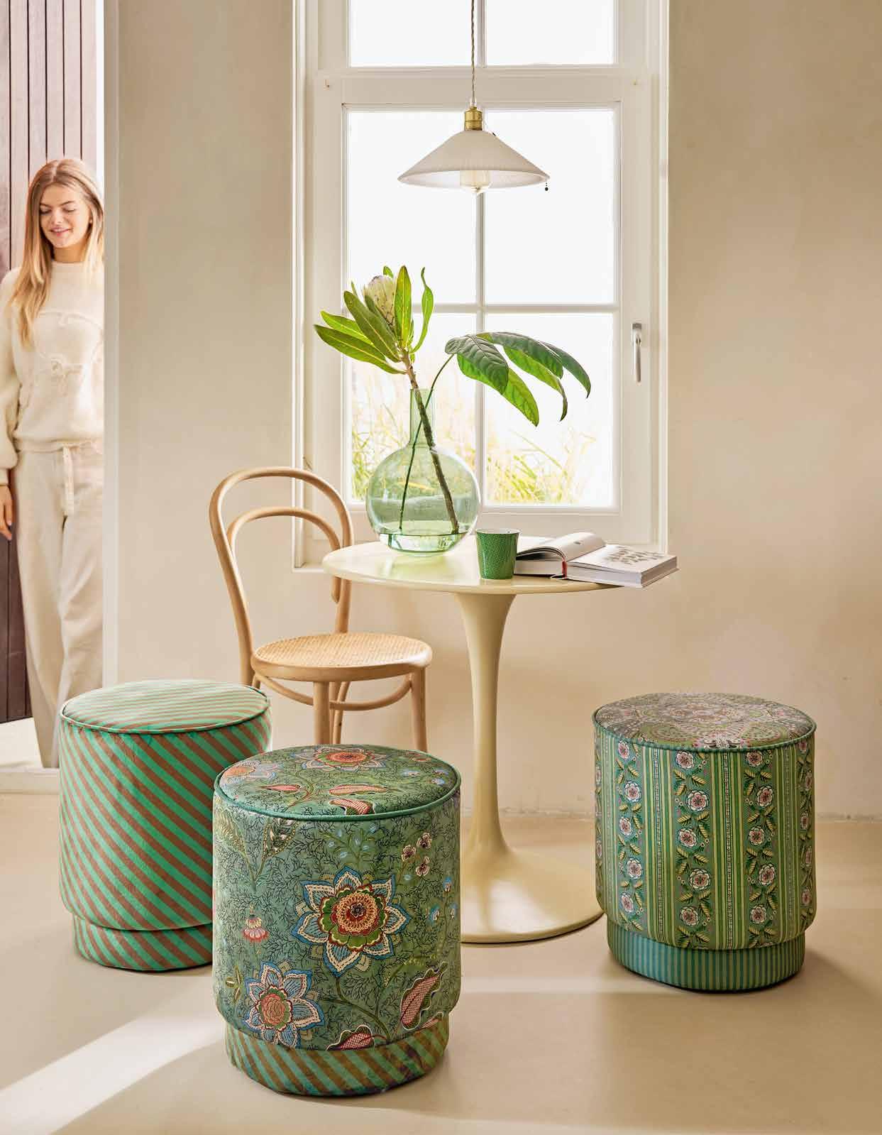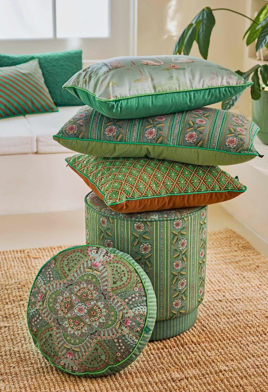 The various shades of green perfectly complement the natural design. Adding stripes gives the collection an unexpected touch, making it perfectly suited to modern interiors.