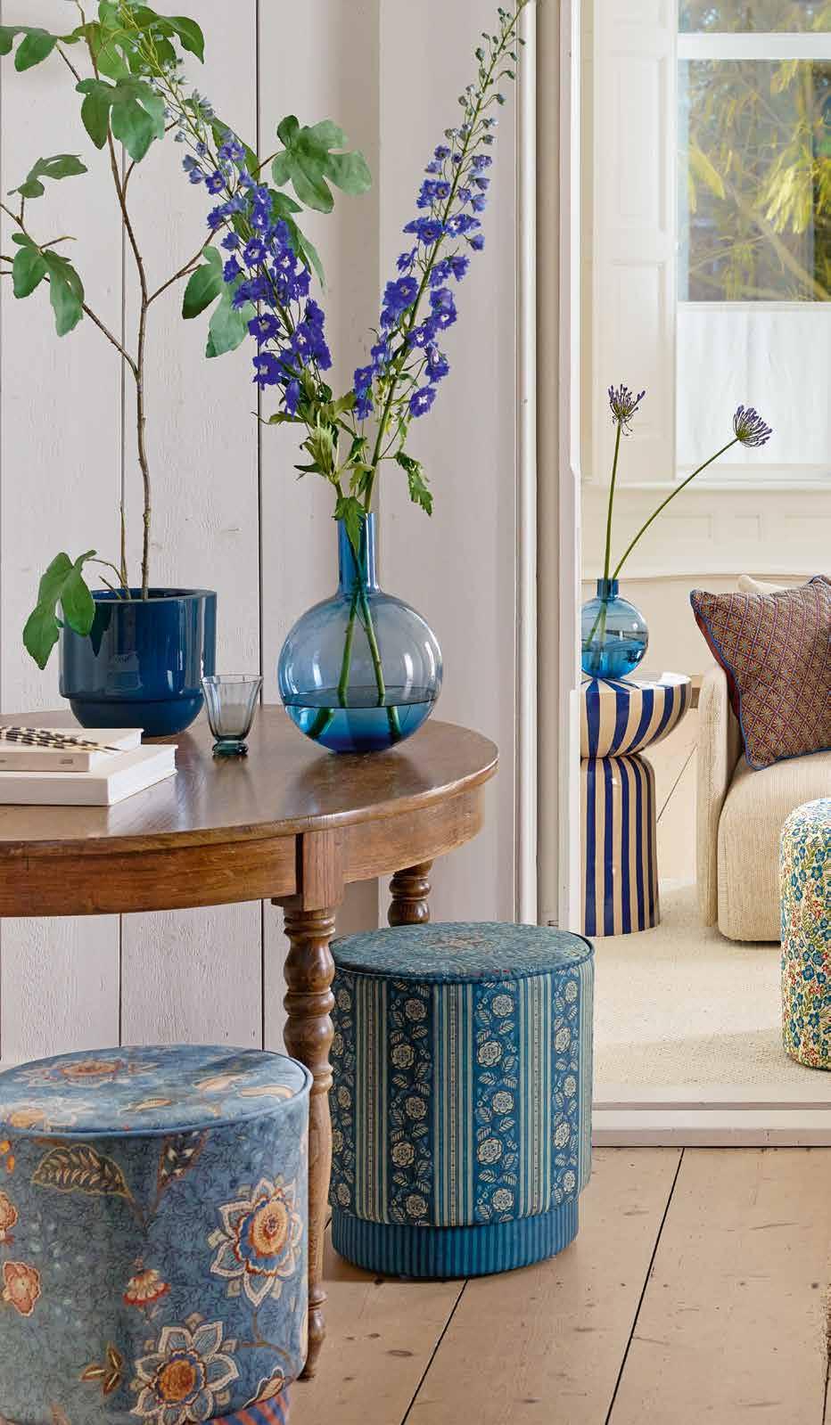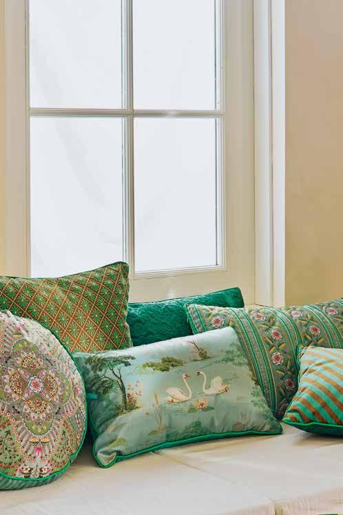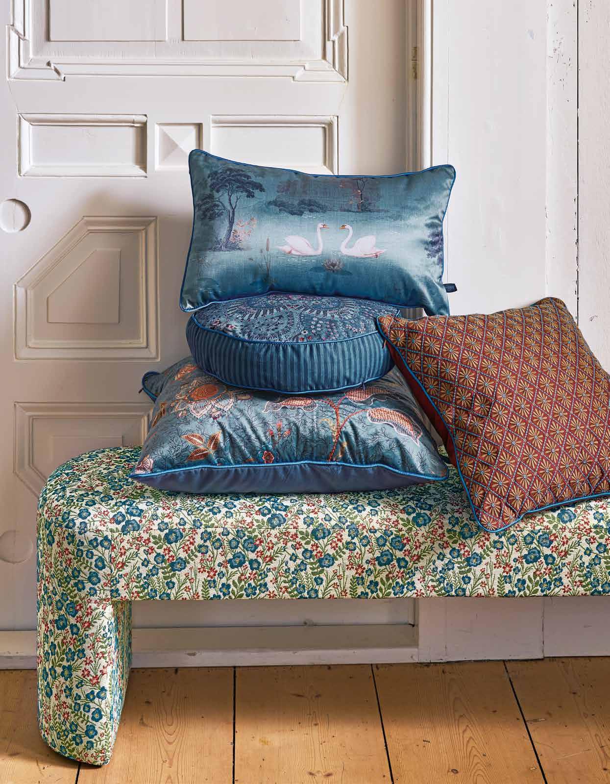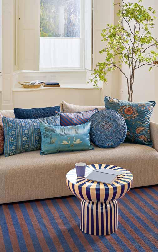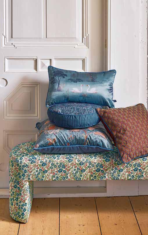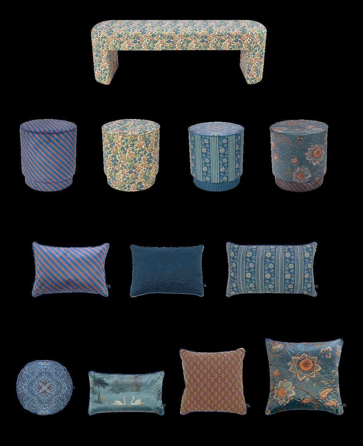 A wide variety of materials make this blue living collection extra exciting. The techniques used, such as embroidery and jacquard weaving, give the collection a luxurious look and feel.
