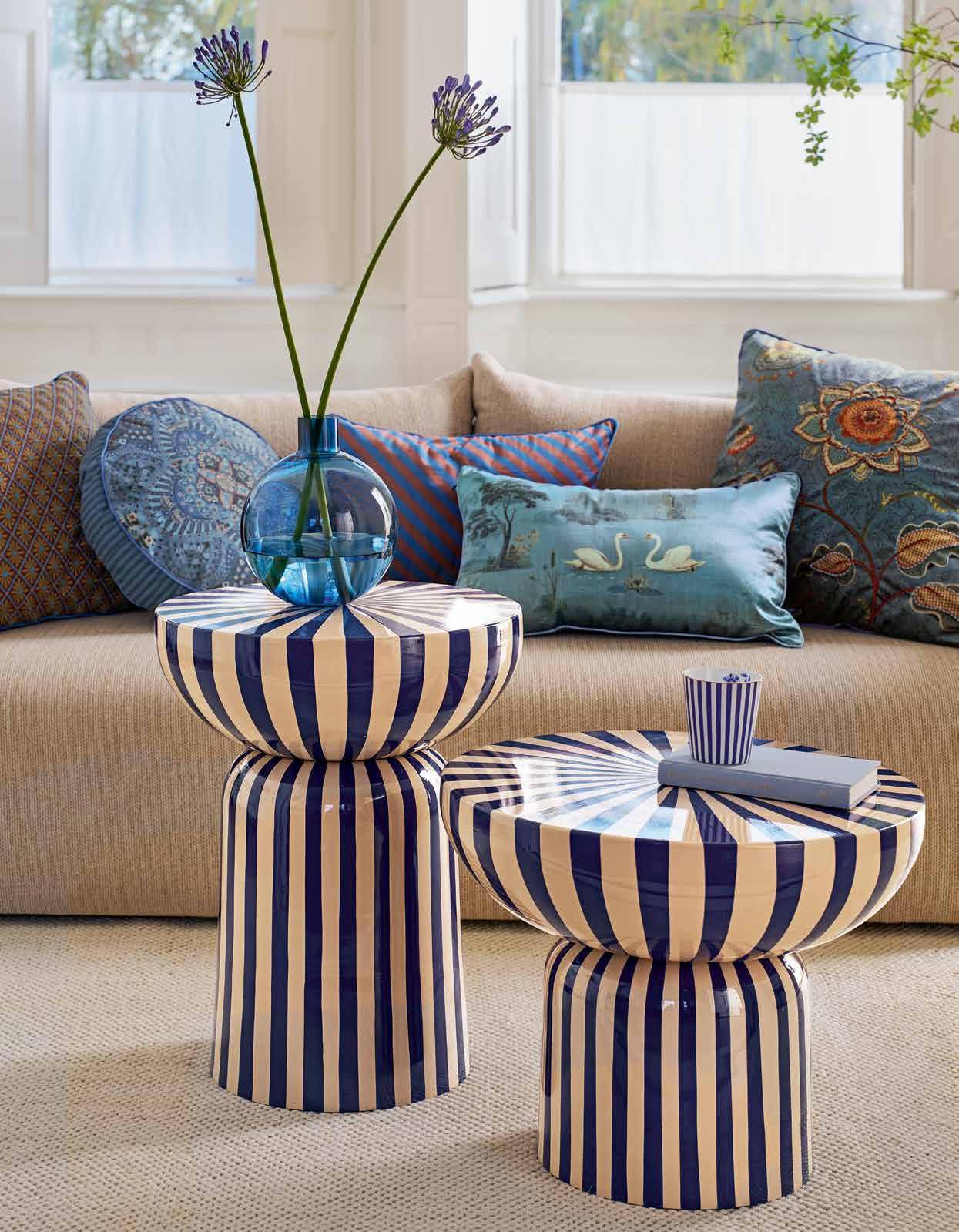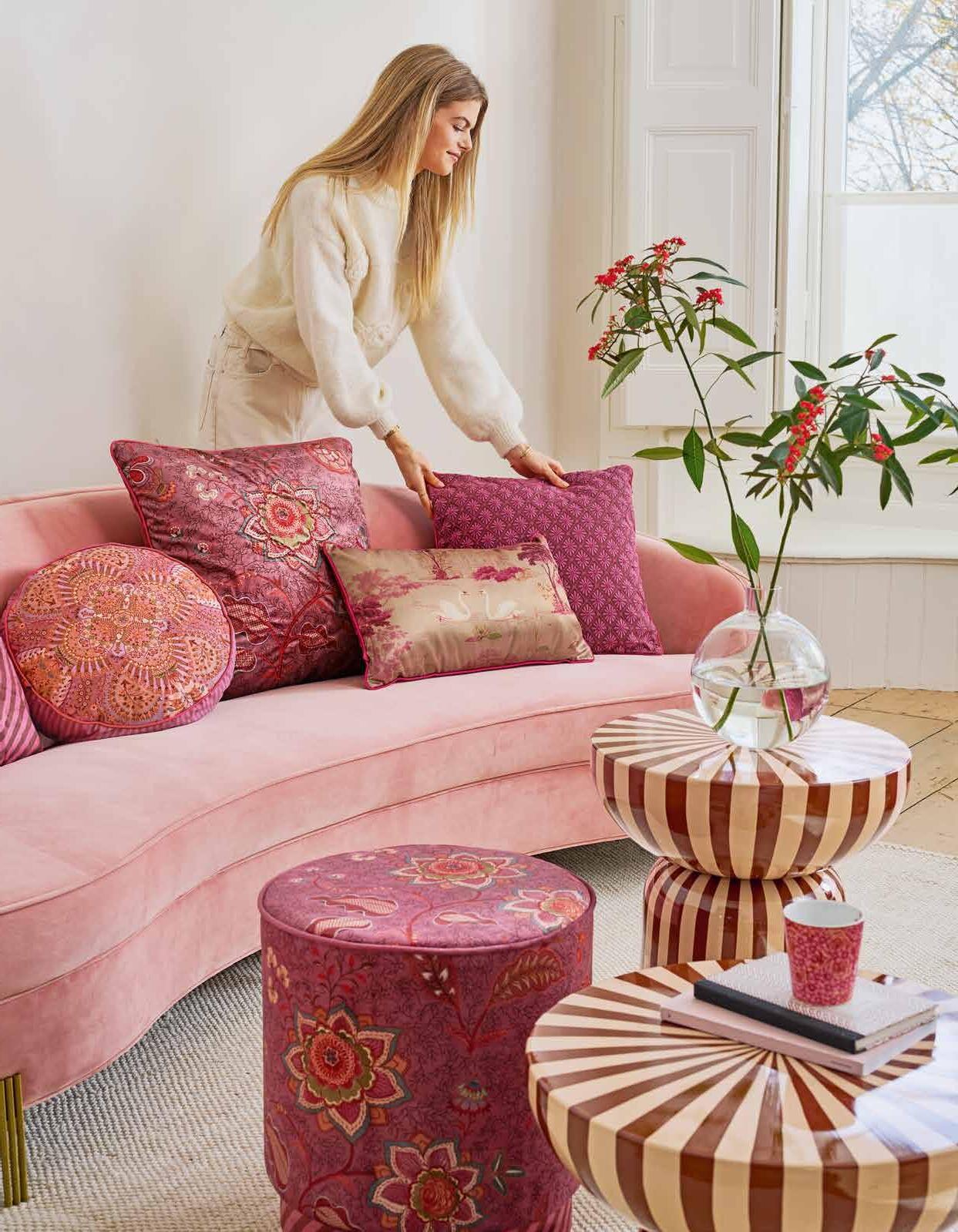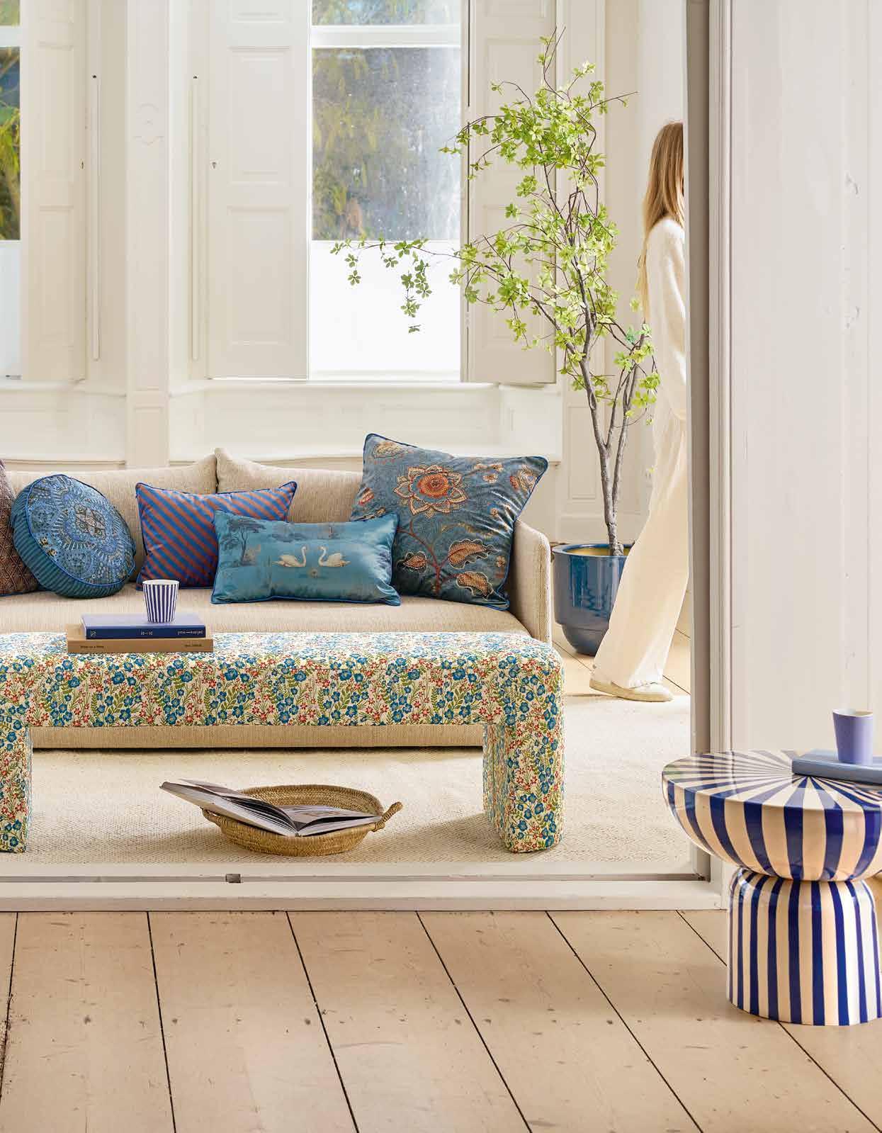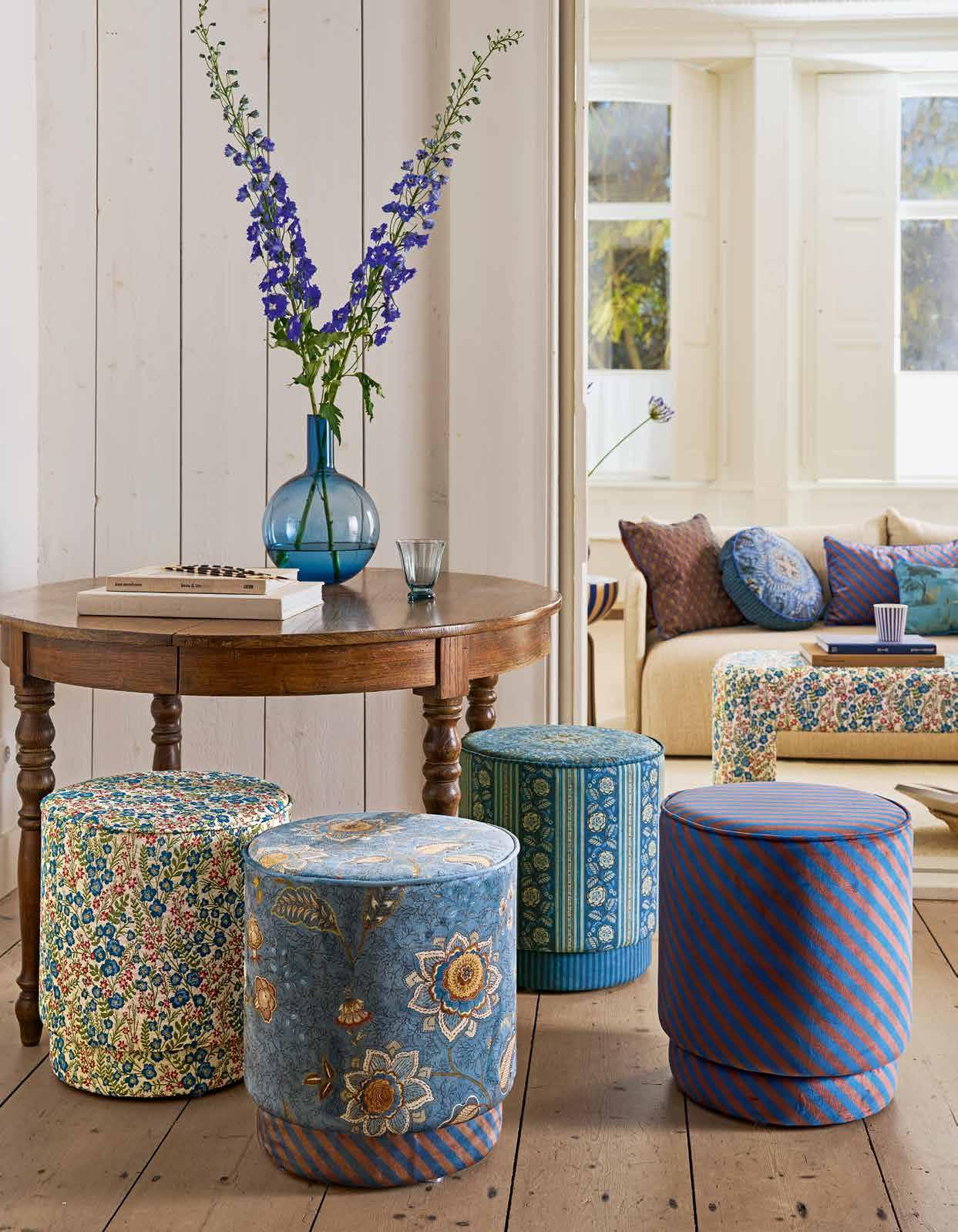 A wide variety of materials make this blue living collection extra exciting. The techniques used, such as embroidery and jacquard weaving, give the collection a luxurious look and feel.