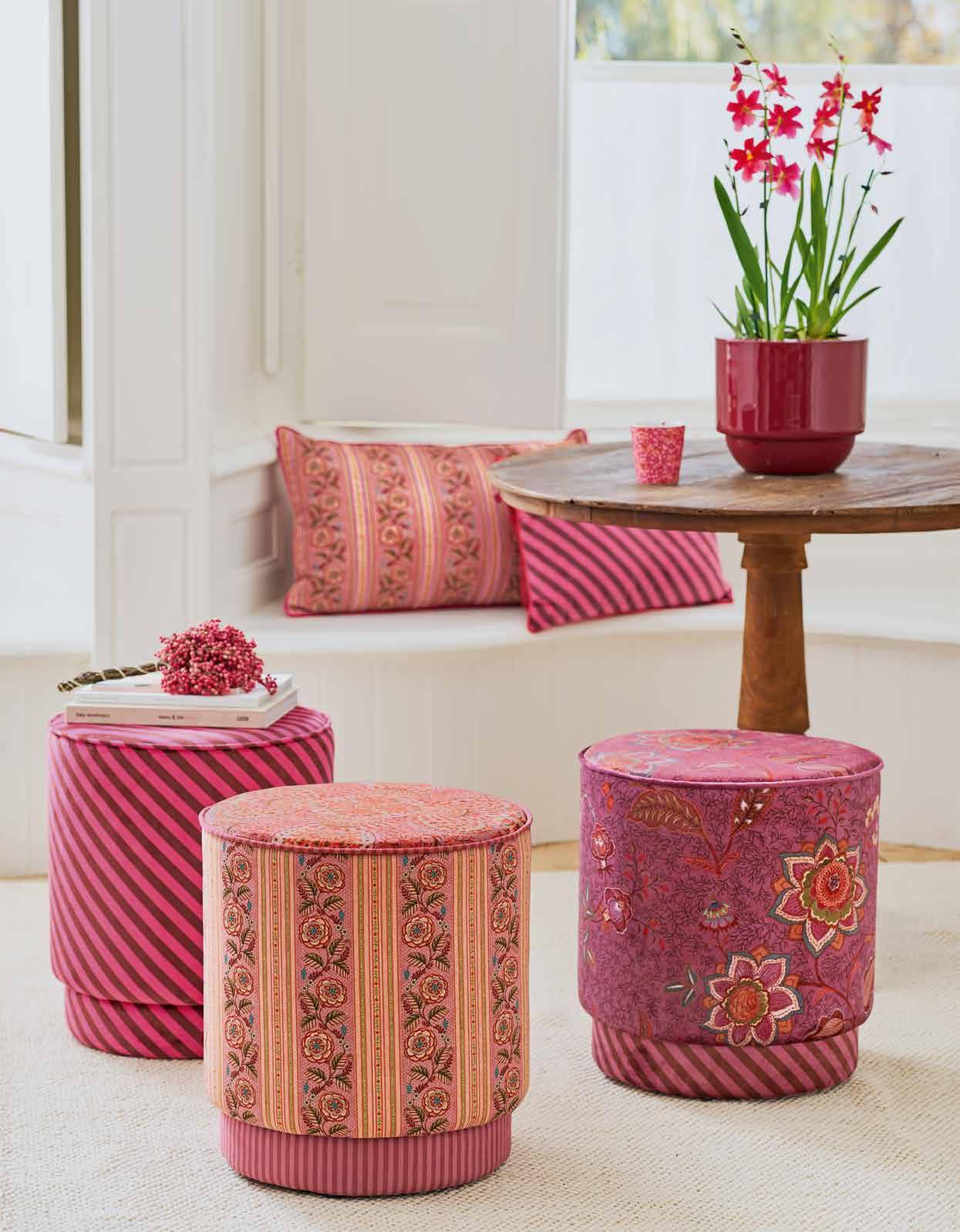 Various shades of pink combined with rich brown tones create a new, elegant colour palette. Some items in the collection are finished with a fuchsia pink edging, which adds a vibrant touch to the collection.