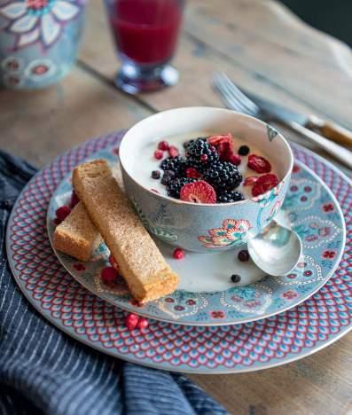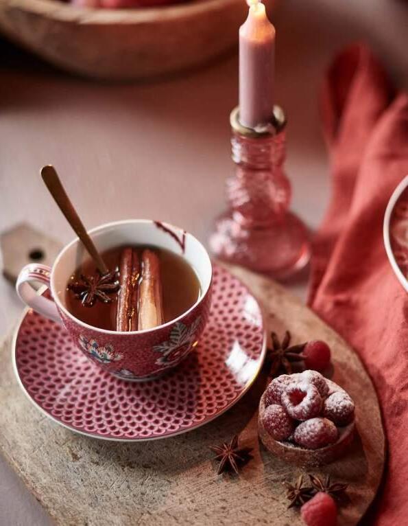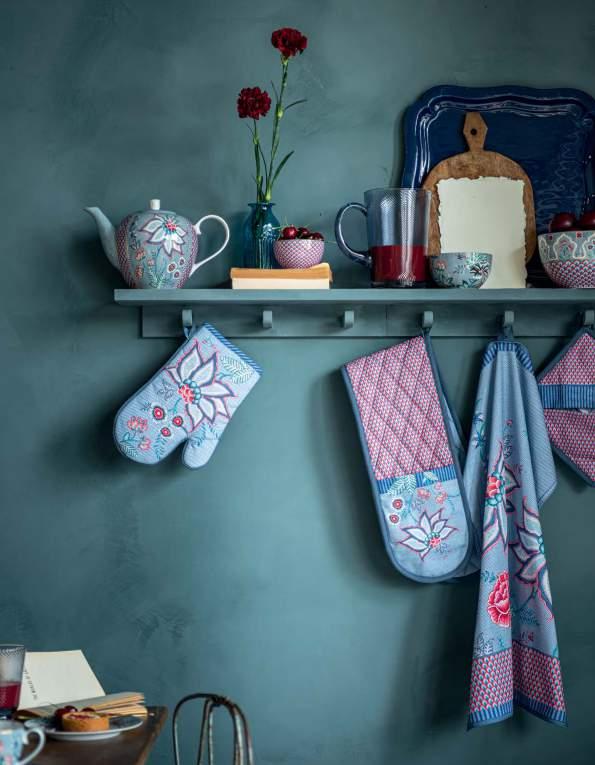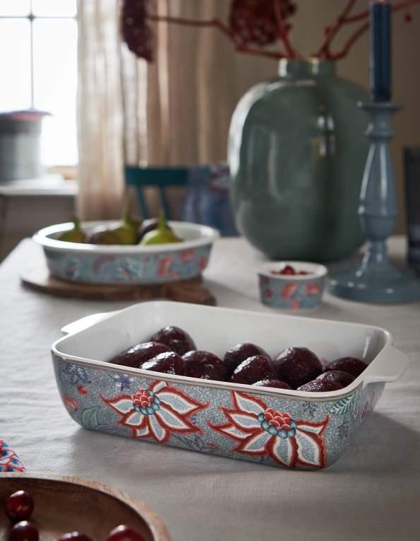 The blue collection, Flower Festival is now also available in a beautiful raspberry edition. The Flower Festival collection consists of tableware, kitchen- and table textiles and dark-blue glassware. For the winter season we added oven- and bakeware to the collection.