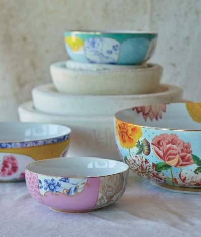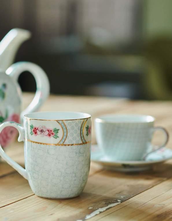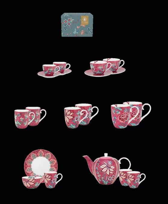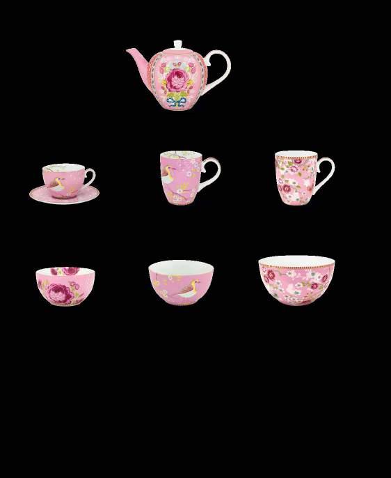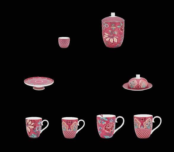 Influences from different cultures create exciting new contrasts and wonderful blends in this tableware collection. Colourful little birds and butterflies are elegantly placed between Eastern flowers, which Pip is known for. All items have a subtle geometric print in the background. The plates and mugs are decorated with typical Asian ornaments.
