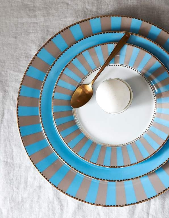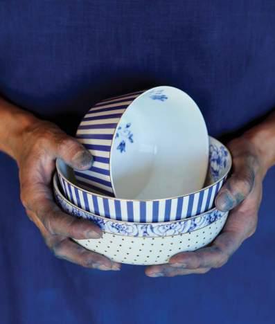 The Royal Stripes items give the Royal White collection an unexpected fresh twist with their clean blue-white stripes.