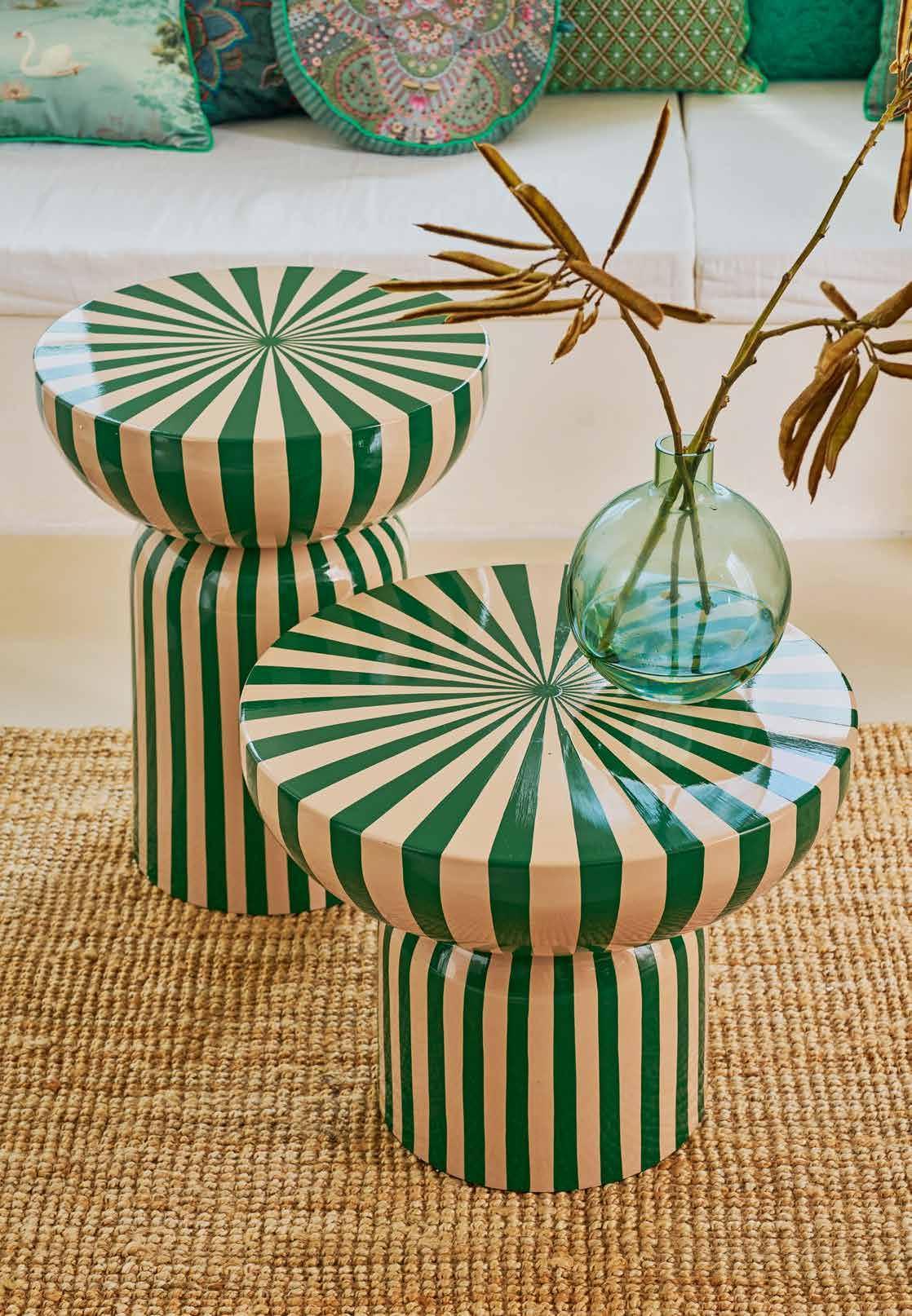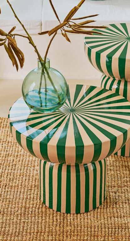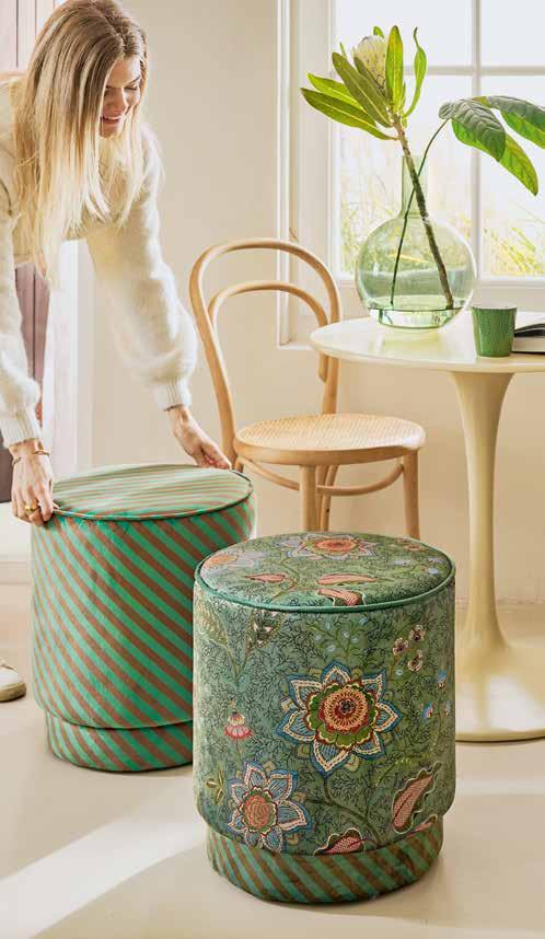 The various shades of green perfectly complement the natural design. Adding stripes gives the collection an unexpected touch, making it perfectly suited to modern interiors.