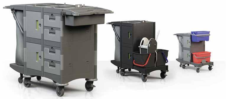Brix Collection valytojų vežimėlis su dviem 2 x 120 L maišais ir lentynomis