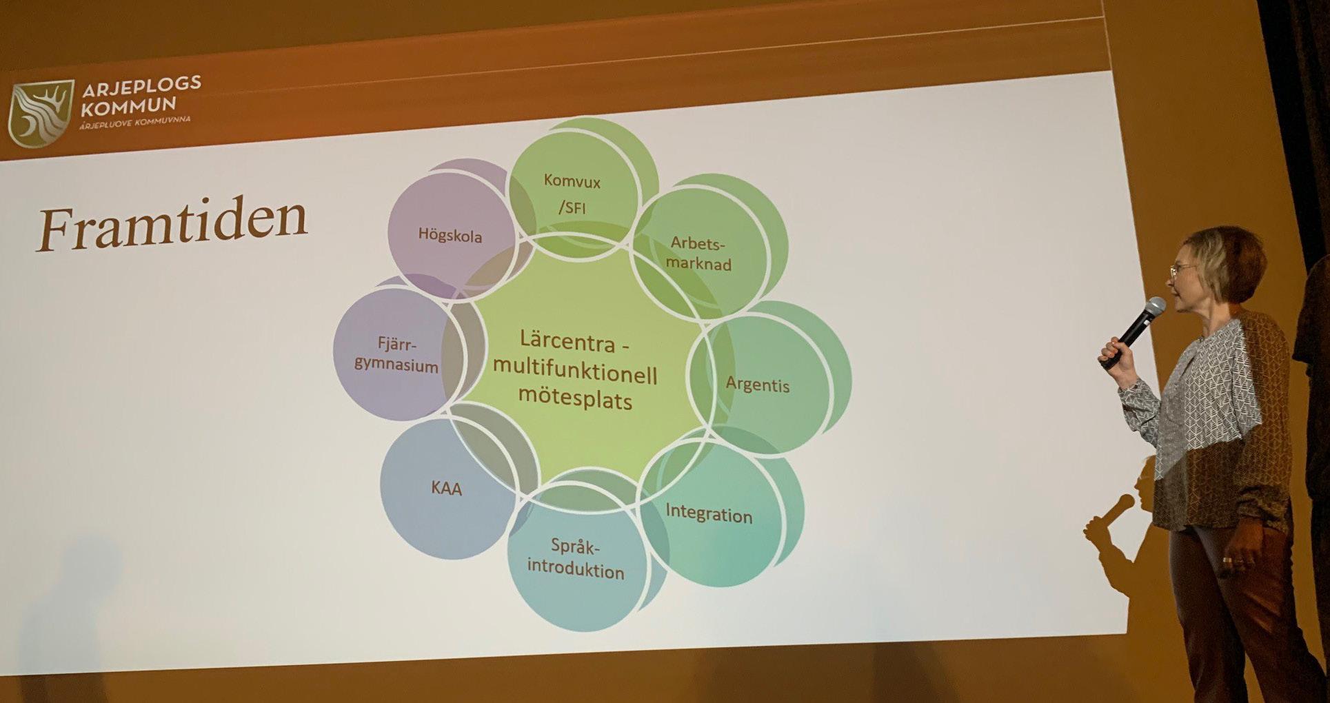 Nina Lango, rektor för Lärcentra och vuxenutbildningen, presenterar visionen om Lärcentra som multifunktionell mötesplats. Foto: Eva Karlberg
