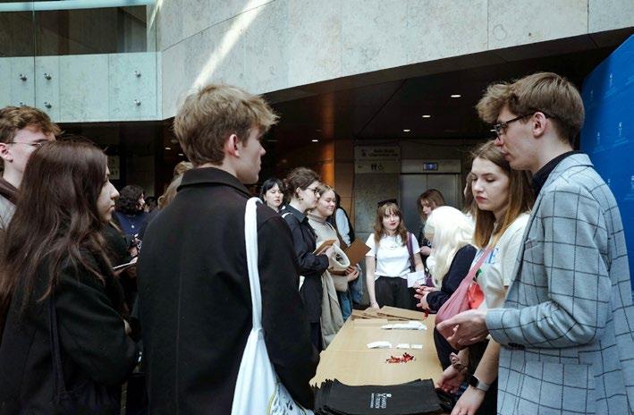 Różnorodna oferta wydziałów Przy stoiskach przedstawicieli 16 wydziałów, Samorządu Studentów, organizacji studenckich i kół naukowych, a także Działu Rekrutacji na Studia ustawiały się długie kolejki. Tłoczno było również pod salami, w których odbywały się prezentacje poszczególnych kierunków. Studenci chętnie rozdawali ulotki i dyskutowali z zainteresowanymi.
