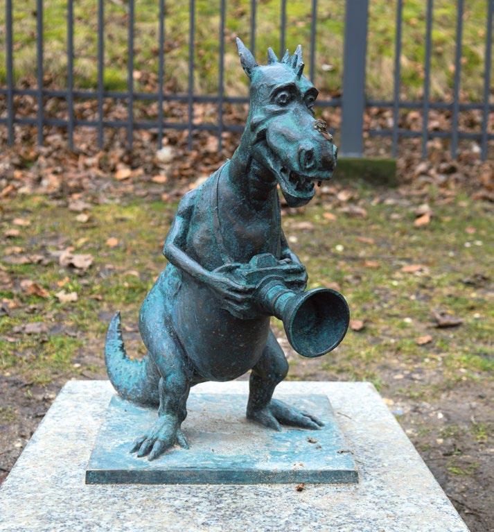 Geodeta jest bliskim sąsiadem Smoka Turysty, który pilnuje bramy do parku Bednarskiego. Spod szkoły dotrzesz do niego w ciągu kilku minut, idąc w kierunku pomnika Edwarda Dembowskiego, a potem przez plac Lasoty. Rozpoznasz go po aparacie fotograficznym i… brakującym rogu. Biedak stracił go zaledwie tydzień po pojawieniu się w tym miejscu! Mamy nadzieję, że szybko odzyska swoją zgubę i zacznie być traktowany z szacunkiem.