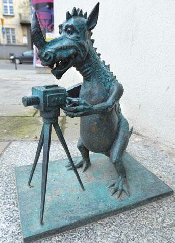 Następnym punktem na Twojej trasie będzie kino Kijów. Dotarcie do niego powinno Ci zająć ok. 10 minut. Podejdź do domu handlowego Jubilat i stamtąd kieruj się w stronę centrum alejami Trzech Wieszczów. Kino zobaczysz po lewej stronie, tuż za przystankiem „Muzeum Narodowe”, a smoka –obok bankomatu w ścianie budynku. Wcale nas to nie dziwi –w końcu smoki słyną ze swojego zamiłowania do bogactwa. Znakami szczególnymi Filmowca, bo tak właśnie nazywa się nasz kolejny okaz, są kamera, trzymana pod pachą książka oraz czerwony szalik (prezent od anonimowego darczyńcy).