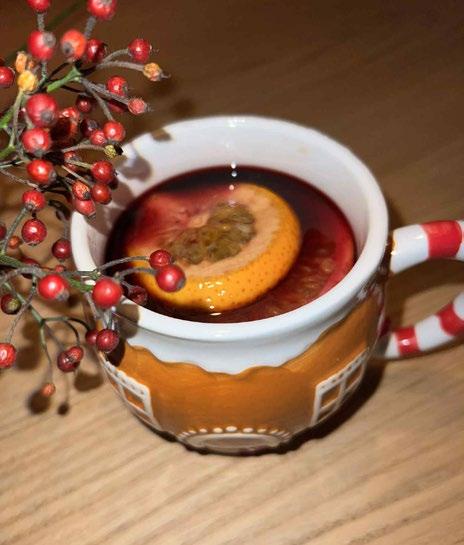 Przygotowanie napoju rozpoczynamy od przelania czerwonego, półwytrawnego wina do garnka o grubszym dnie. Następnie dokładnie myjemy pomarańczę i kroimy ją w plasterki – część z nich dodamy bezpośrednio do wina, a resztę zostawiamy do podania. do garnka wkładamy również kilka cienkich plasterków świeżego imbiru, które nadadzą całości lekko pikantnego, rozgrzewającego smaku.