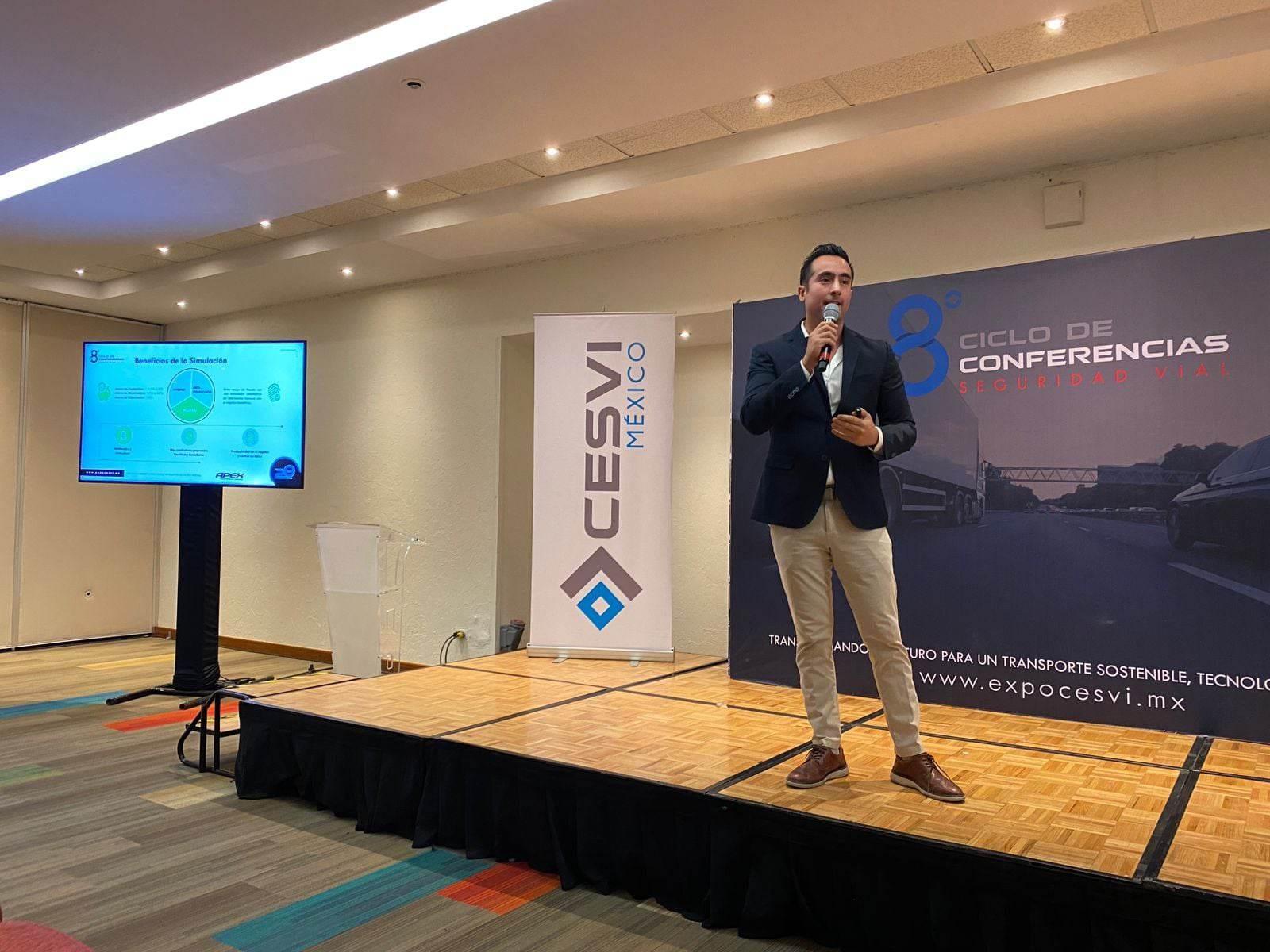 EnelsegundodíadeconferenciasdeEXPOCESVIINTERACTIVA,JoséMiguelMontoya, representantesdeAPEXSimuladores,hablódelasventajasenelusodeéstosparaelmejoramientoenlos nivelesdesegundaddelasempresastransportistas,asícomodeotrossectorescomoelcasodela aeronáuticaaylaminería