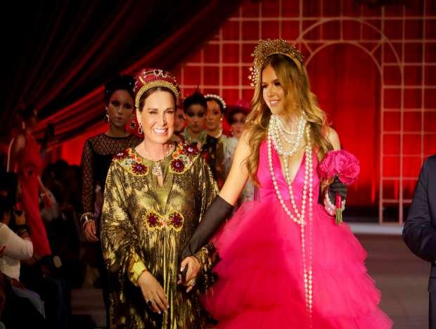 Enestemagnoeventoaltruistademoda,SoniaFalconepresentósus icónicosdiseñosaccesorizadaporlasmajestuosasjoyasdeDaniel Espinosa;lapasarelaestuvoacompañadaporlasvocesdeKarlaGarrido mezzosoprano,lasopranoPaulaMalagónyeltenorHéctorPalacio,bajola batutadeldirectordelaorquesta,JoséBertinoRicárdezHoyos