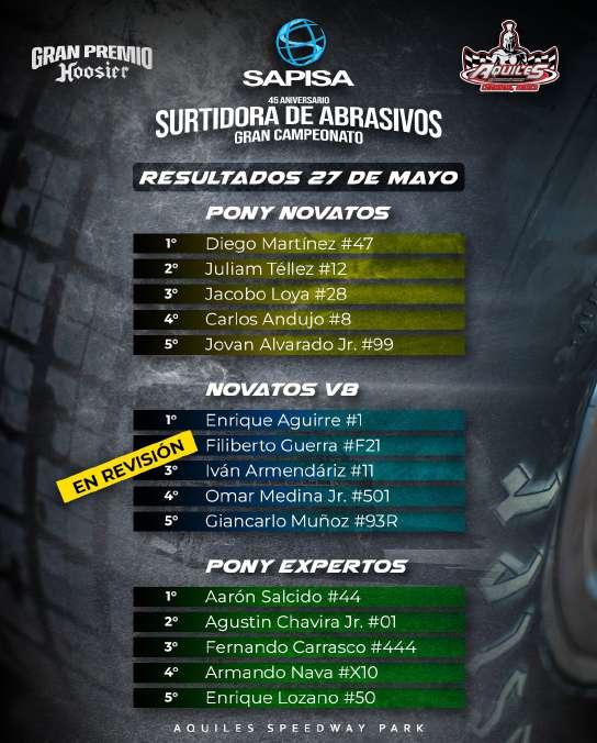 AquilesSerdán,Chihuahua,1dejuniode2023-Elpasadosábado27demayosecorriólasegundafechadelGranCampeonato45AniversarioSAPISASurtidora deAbrasivosyProductosIndustriales,tituladaGranPremioHoosier,conunambienteinmejorablequesololalluviapudodetenerenelAquilesSpeedwayPark SeviviólasegundafechadelGranCampeonato45AniversarioSAPISASurtidoradeAbrasivosyProductosIndustriales,teniendoporsedelapistadetierramás importantedenuestropaís,endondelanochesellenódeadrenalinacon3competenciasdesarrolladas,hastaquelapresenciadelluviaimpidióquesecontinuara conlaactividad