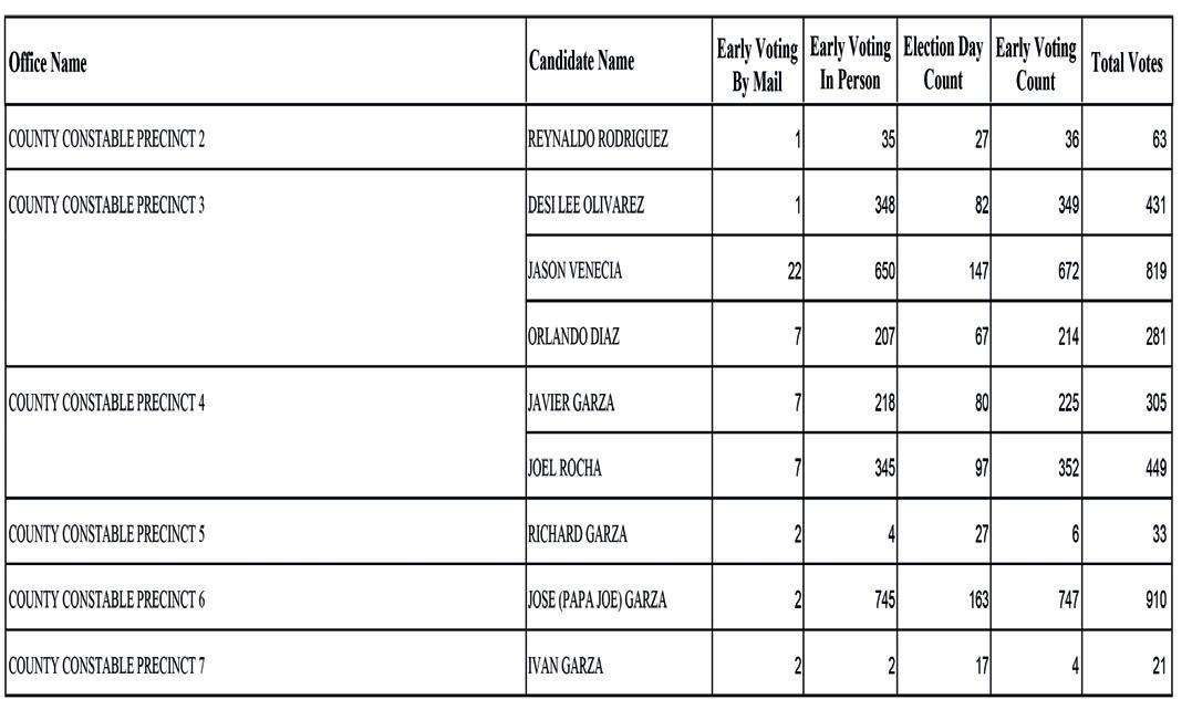 En este sentido, el Departamento de Elecciones del condado Starr publicó los resultados finales;