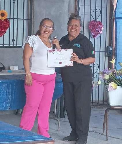 L as maestras de manualidades, Ana María Ramírez Rivera y Paula Garza Sánchez, fueron enviadas por el Gobierno del Biol. Ramiro Cortez Barrera a capacitarse con el Curso “Esencia Demis”, impartido en Reynosa. A la terminación del Curso, Ana María Ramírez y Paula Garza recibieron sendos reconocimientos de haberlo estudiado en su totalidad y pasar con éxito la evaluación requerida. Tras adquirir nuevos conocimientos y técnicas en su especialidad de manualidades en flor de foami, ambas maestras agradecieron al Presidente Municipal por el apoyo que les brinda para su superación, sabiendo que a la postre redundará en beneficio de las alumnas que aprenden manualidades en la Biblioteca Municipal.