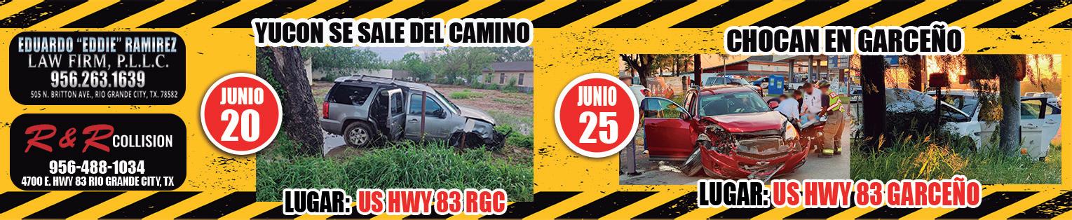 E l martes 25 de Junio, se produjo un accidente en la intersección de la US Highway 83 y la FM 649. El incidente involucró a dos vehículos: un Ford Taurus y una Chevy Equinox. El Departamento de Seguridad Pública de Texas, del Sheriff del Condado de Starr, Bomberos de Escobares y La Rosita, llegaron rápidamente al lugar del accidente para atender la situación y evaluar los daños. Afortunadamente, no se reportaron heridos graves. Ambos conductores y pasajeros fueron atendidos en el lugar por paramédicos y se encuentran fuera de peligro, al menos una persona tuvo que ser transportada en ambulancia para una valoración mayor en un Hospital de Rio Grande City. El tráfico en la zona se vio afectado durante aproximadamente una hora, mientras se realizaban las labores de