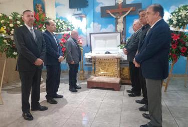 R espetuosamente y en reconocimiento póstumo al gran arraigo, amor y pasión por su pueblo, este miércoles se montaron guardias de honor al pie del féretro del ex alcalde Profr. Amaro Guerra Ramírez. El alcalde Biol. Ramiro Cortez Barrera, acompañado de ex presidentes municipales y de integrantes del Cabildo, encabezó las guardias de honor en el marco de un emotivo mensaje pronunciado por el Profr. Eleazar Salazar Garza.Posteriormente, el Biol. Ramiro Cortez, acompañado de la Sra. Andrea Aguirre de Cortez, y de la presidenta del Sistena DIF, Dra. Andrea Cortez de Cavazos, refrendó su solidaridad y más sentidas condolencias a la apreciable familia del Profr. Amaro Guerra. En su mensaje, remarcó que el Profr. Amaro cumplió con su pueblo y lo hizo hasta su último día, siempre inquieto, con una rebeldía justificada y ocupado en trabajar por el desarrollo, la paz y la tranquilidad de Miguel Alemán.