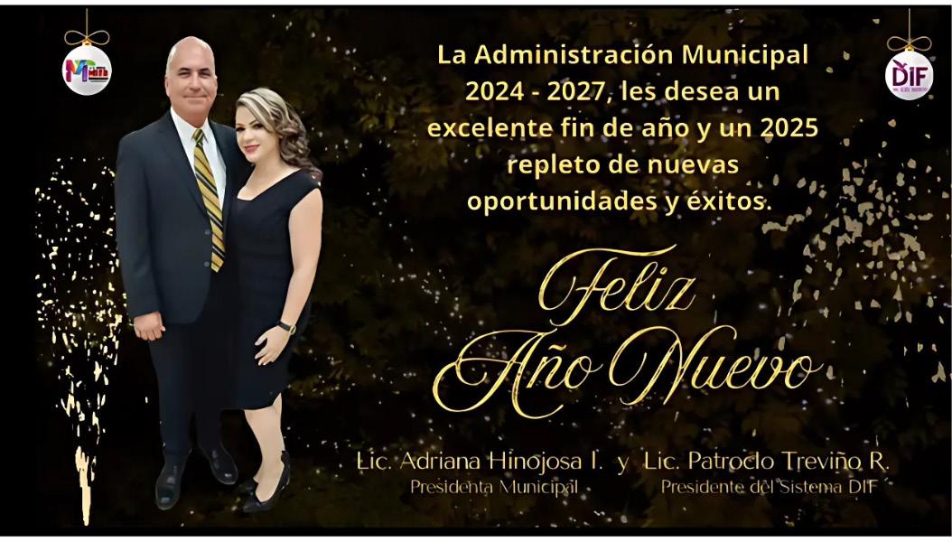 El Gobierno Municipal encabezado por la Alcaldesa Ernestina Perales Ortiz, y su equipo de trabajo les desea un Feliz y Próspero Año 2025, que la Paz y la