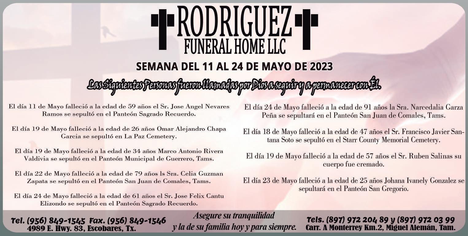 Viernes 26 de Mayo de 2023 2 CLARISSA GONZALEZ Director General / Editor USA RAMON BALBOA PEDRAZA Ventas / Editor Mex. ARNULFO A. TRUJILLO ORTEGA Diseñador Gráfico DIEGO BALBOA Social Media / Distribución MÉXICO Calle quinta #226 zona centro norte Cp 88300 Cd. Miguel Alemán, Tamps. Tel.: (897) 972-1949 / info@lapistolera.com DISTRIBUCIÓN SEMANAL DE 7,000 EJEMPLARES EN: Centros Comerciales, Restaurantes, Hoteles, Unidades Médicas, Departamentos Escolares, Instituciones Públicas, Agencias de Autos, Oficinas, Comercios, Bancos y Más. COBERTURA INTERNACIONAL Zapata, Roma, Escobares, Rio Grande, La Grulla, Sullivan, La Joya, Peñitas. Miguel Alemán, Ciudad Mier y Nva. Ciudad Guerrero, Tam. ESTADOS UNIDOS 602 E Grant St Roma, TX 78584 PH 956-267-1222 / info@lapistolera.com DIRECTORIO